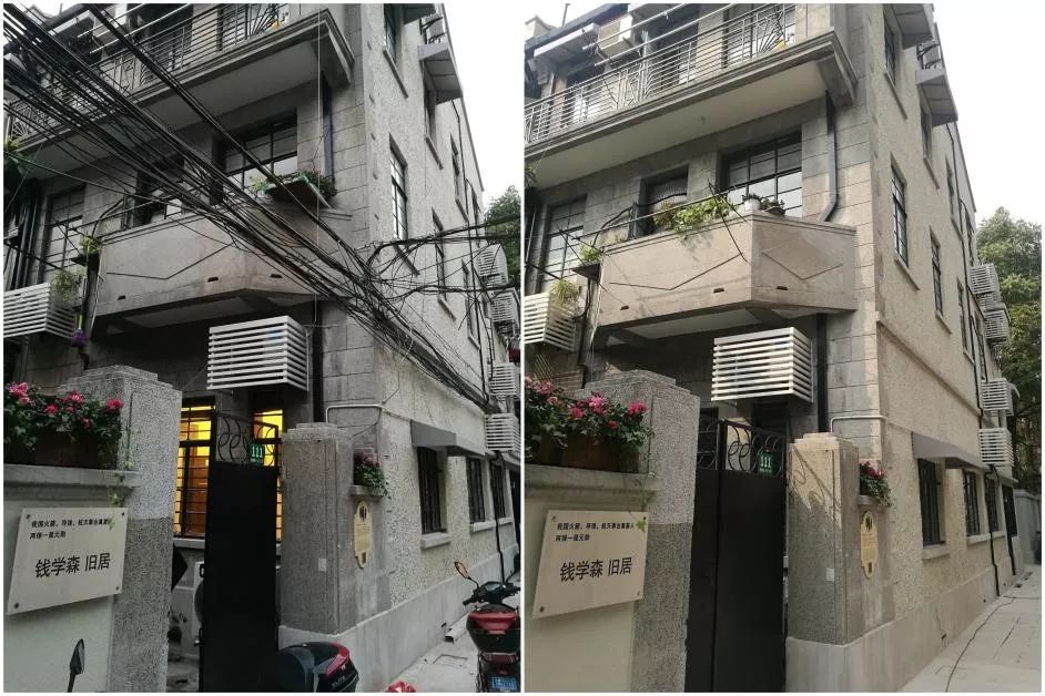 以前空中和墙上密布的“黑色蛛网”不见了,武康大楼和浦江大楼变得干净素雅,岐山村小区不仅变得整洁了,而且更具文艺气息。
