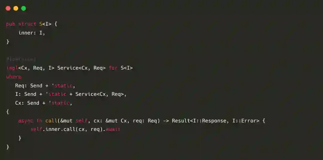 我们还提供了 #[service] 宏(可以理解为不需要 Box 的 async_trait)来使得用户可以无心理负担地使用异步来编写 Service 中间件。