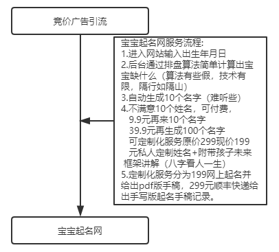 18年12月朋友开了个起名馆(起名、看八字、风水),由于生意平平找到我想要实现网络推广,提高收入,他的思路是想要通过百度竞价+天猫模式。