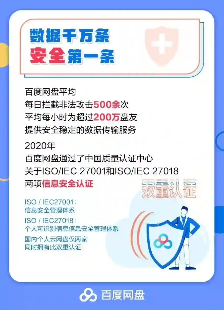 在提供存储服务的同时,百度网盘也注重用户的数据安全,每日拦截非法攻击五百余次。