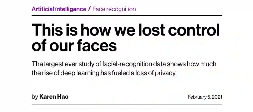 从中得出的最广泛的启示是,随着对更多数据(即照片)需求的增加,研究人员不再费心去征求用作数据的照片本人的同意。《麻省理工学院技术评论》发文This is how we lost control of our faces,称该论文是「有史以来最大的面部识别数据研究,显示了深度学习的兴起在何种程度上助长了隐私的丧失」。在这项关于面部识别数据集进化的追踪调查中,有一些历史时刻和揭示这项技术发展的事实,它们展示了面部识别的本质:当应用于现实世界时,它是一项有缺陷的技术,创建的明确目的是扩大监控状态,结果是侵犯我们的隐私。以下是43年面部识别研究得出的9个令人惊讶又可怕的结果。1 面部识别在学术环境与现实世界应用之间存在巨大的鸿沟作者进行这项研究的原因之一就是想要了解为什么在测试中准确率接近100%的面部识别系统,在现实世界中应用时却有很大的缺陷。例如,纽约市的大都会运输署在面部识别的错误率达到100%后,停止试点项目。 面部识别在识别黑人和棕色人种时的准确率较低,最近,三名黑人男子被面部识别技术错误识别并被捕。