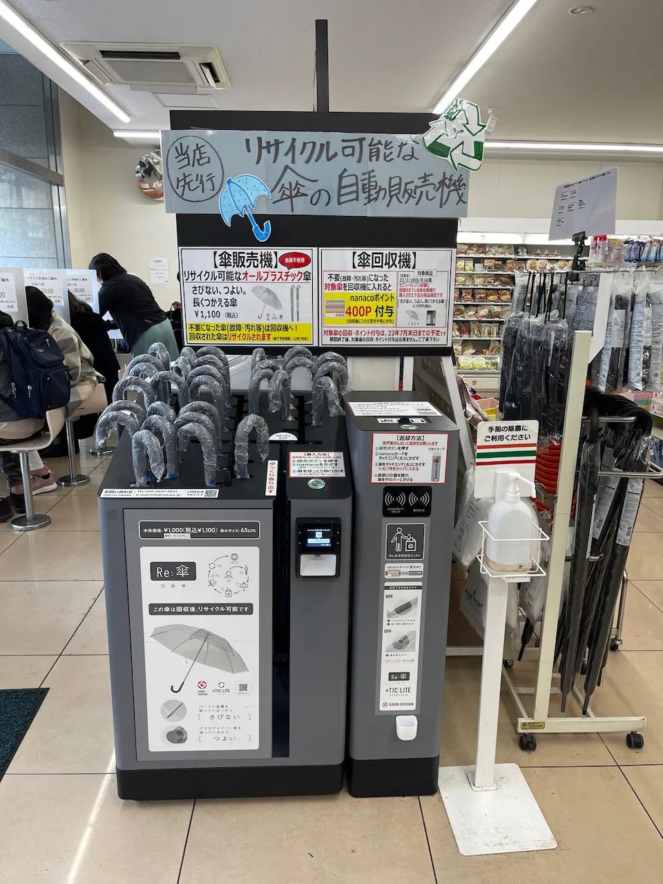 日本常下雨,很多人都会像园子一样,遇到下雨就在日本街头随处可见的便利店买把伞。但这种塑料透明伞,一般用一段时间就会坏掉,命运的终点是垃圾箱。而这一次园子没把伞扔进垃圾箱,却把它带回了 7-11,放到了雨伞自动售卖机右侧的雨伞回收箱,相当于 400 日元的积分被退还回到了她的 nanaco 卡里。算下来,这把伞只花了 700 日币。