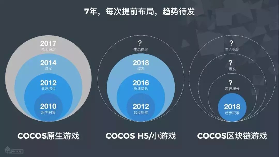 2018年是区块链游戏的元年,COCOS在区块链游戏方面已开始布局,推出了COCOS-BCX,计划向游戏应用的开发者提供易用、完善的区块链游戏基础设施,包含可视化的开发套件和链上生态环境。同时向游戏玩家提供一个数据透明、规则透明,公平、公正、公开的游戏环境,不会发生后台操纵游戏掉率、恶意诱导消费等行为。