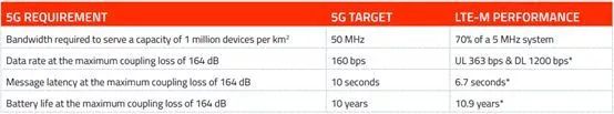 2018年3月,Sierra Wireless、爱立信、Altair等20家知名厂商联合发布了LTE-M(eMTC)满足5G要求的评估报告,报告更是从单位容量带宽需求、数据速率、消息时延、电池寿命等多方面进行评估,结果显示eMTC的性能完全符合ITU提出的5G物联网的需求。