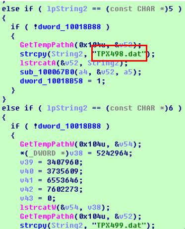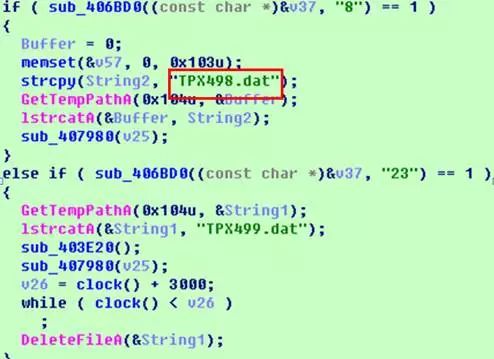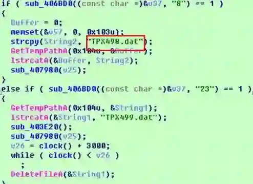后门程序拥有键盘记录功能,通过调用GetAsyncKeyState函数实现,所有记录存放在Temp目录的TPX498.dat文件中