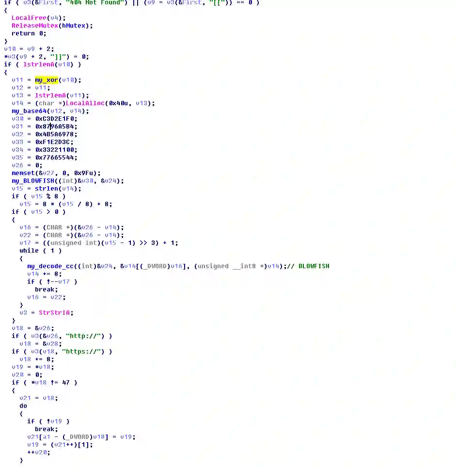该后门程序在C&C获取上均使用了第三方可信网站中转的方式, 老版本FakeJLI在论坛网页中放入C&C地址的异或加密字符串进行C&C更新。