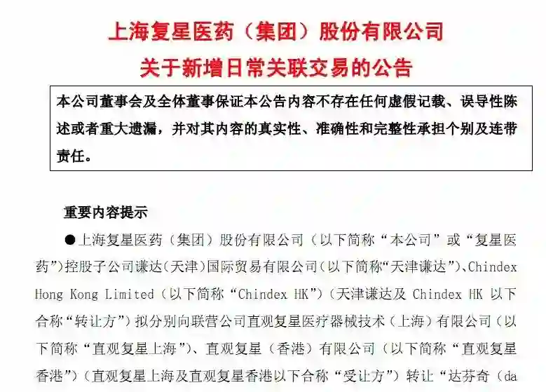 不过,对于此次交易,有分析称,从现在算起,离复星医药独家经销权到期日2020年12月31日还有两年时间期,相比于到期后继续签约需要付出高额的代理费之外,此次转让对复星医药是利好的。