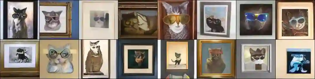 3.9B 参数的 RQ-Transformer 生成结果,画框里带着眼镜的猫: