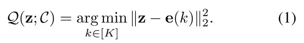 考虑到一个向量 表示 的 , 这个代码的嵌入离 最近, 如下公式 (1) 所 示。