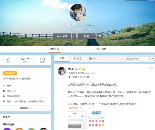 在最后一个MIUI10开发版中,“系统工具广告”一键开关功能也进入了外发公测版本,这也是此次MIUI10最后一波开发版升级中最重磅的功能。今天上午,小米互联网一部总经理金凡通过个人微博@MIUI小凡发布消息表示,“为了用户体验,MIUI10最后一个开发版内测,上线了一键关闭MIUI所有系统工具广告的开关。该功能会持续完善,将随下一个大稳定版本铺到所有支持的机型上。”