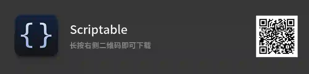 快捷指令是 iOS 自带的软件就不需要下载了,Scriptable 可以扫描下方二维码下载。