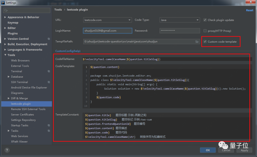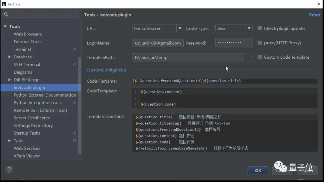 第一次安装需要先配置,配置路径如下:File->settings->tools->leetcode plugin