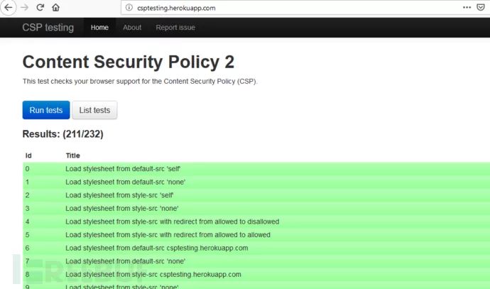 我们可以打开这样一个网站,点击“run”帮助我们自动化的测试CSP Bug