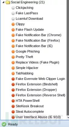 在beef的这一栏目,像Chrome,Firefox的Bar,还有Fake Flash Update这些就符合需要,