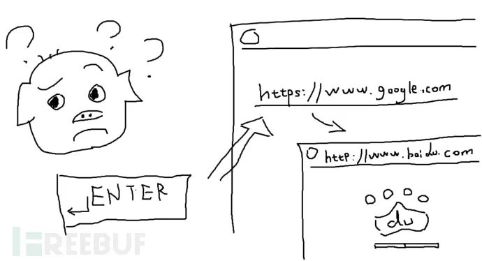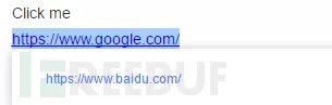 标签伪造URL,点进去看似谷歌的域名,会跑到”百度”上去