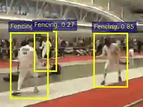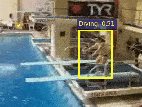 时空动作检测(spatio-temporal action detection)相比于时序动作检测略有不同,时空动作检测不仅需要识别动作出现的区间和对应的类别,还要在空间范围内用一个包围框(bounding box)标记出人物的空间位置。
