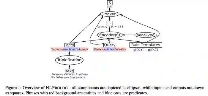 Weber等人[12]研究的是神经Prolog,这是一个可微逻辑方法(differentiable logic approach),它将符号推理和基于句子嵌入的规则学习方法结合了起来,可以字节应用到自然语言文本中,而不需要将文本转化为逻辑形式,且可以使用Prolog形式的推理来进行逻辑查询。因此,这个框架事实上是建立在模糊逻辑和预训练句子嵌入模型之上的。 我认为神经逻辑方法目前在社区中是一个被严重低估的领域,这篇文章以及上篇文章都为它们是如何推理出特定答案提供了一个非常基础的可解释的机制;因此当研究人员想要在真实可解释性方面开辟战场时,我希望这个领域能够得到足够的重视。图6:Taken from Weber et al. 针对处理起来相对简单的KGQA数据集,Xiong等人[13]提出了一种基于不完整知识图谱的QA,在这里需要进行一些链接预测;Sydorova等人[14]在TextKBQA任务(有两个知识源:图和文本段落)上获得了不错的结果。另外一种方法是Yang等人[15]提出的,他们使用了带有KG(本例中使用的是wordNet和NELL)的BERT形式的阅读理解模型。截止2019年3月,他们的KT-NET在SQuAD1.1和ReCoRD上的表现优于纯粹的MRC系统,这说明这是一个有前景的研究方法。 基于阅读理解的QA系统目前仍然是比较火热的领域,在本次会议中有多个oral和poster的session都是关于这一方面的,所以我敢肯定随后会有一些关于这个方面更详细的解读。。简而言之,类似WikiHop或HotpotQA这样的新数据集是针对整个 Wikipedia文章进行multi-hopQA,您需要结合几篇文章中方法来回答一个问题。CommensenseQA包含了从搜索引擎日志中获取的真实问题,因此系统需要建立莫衷类型的常识推理。如果你想从一堆完全无意义的样本中区分出有意义的部分,那么你就需要使用对抗训练了,今年ACL也提供了几篇文章(Zhu等人[16]和Wu等人[17]),他们的对抗训练还不错。 最后,要为了克服训练数据集较小的问题,Alberti等人[18]提供了一种改写数据增强方案(paraphrasing data augmentation schema),能够生成多达50M额外的问题来训练他们的系统,结果显示F1值有+2到+3的提升。