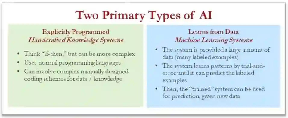 图 2. 两种类型的人工智能:显式编程和学习系统