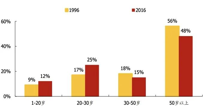 同时,和历史数据相比,我国颈椎病发病年龄呈现明显的年轻化趋势,2016年50 岁以下人群占比已达到52%,30岁以下人群占比高达37%。