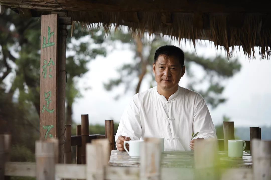 白色对襟棉布衫,黑色束口灯笼裤,不管来者何人,面上始终波澜不惊。如果不是老茧蜕皮的粗厚手掌提醒着,这是一个制茶人,唐小军看起来更像武林中人。