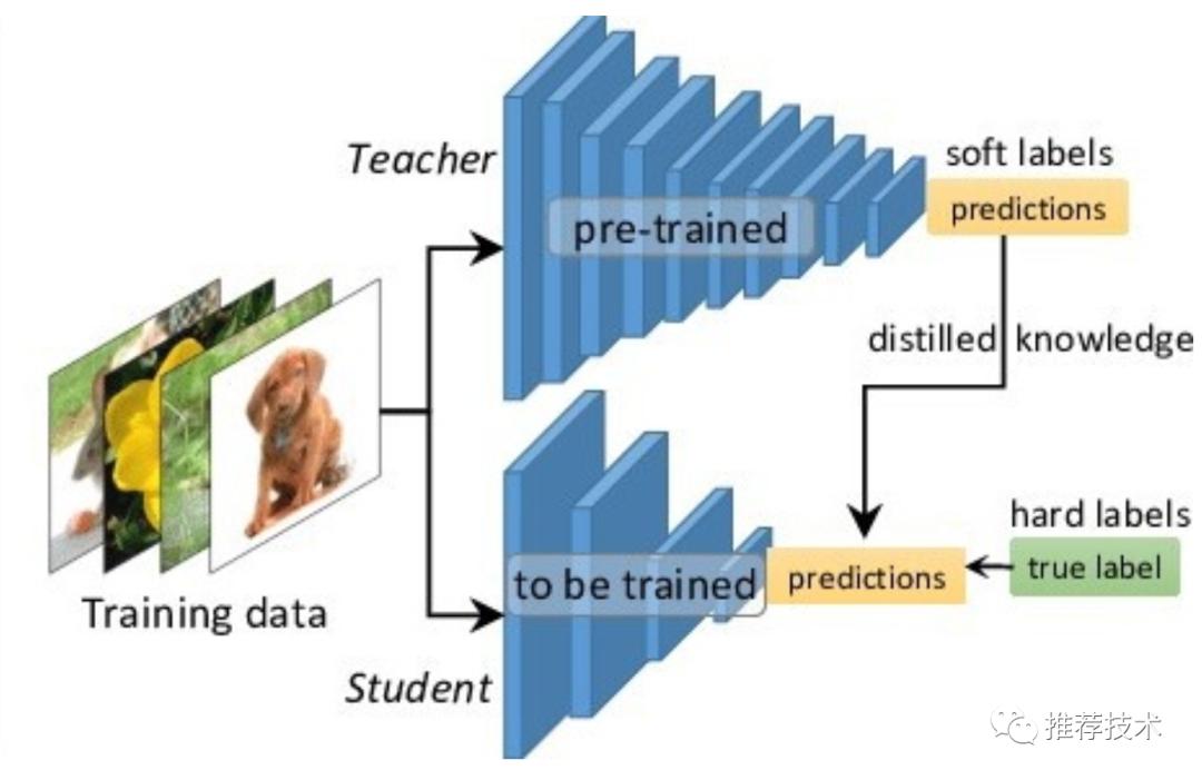 先说Distillation,大家心里可能就已经有了一个初步的模型框架了。没错,蒸馏嘛,就是这样: