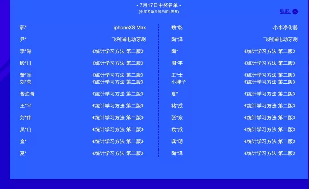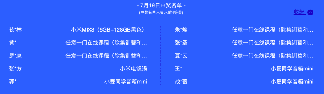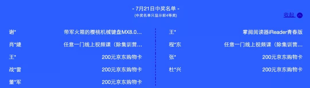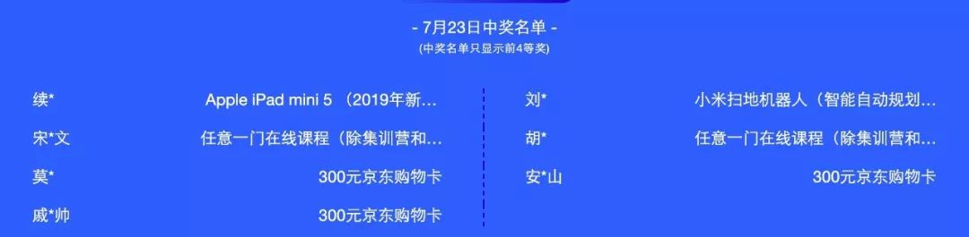 活动期间(7月17日-23日)每日前四等奖获奖名单如下:
