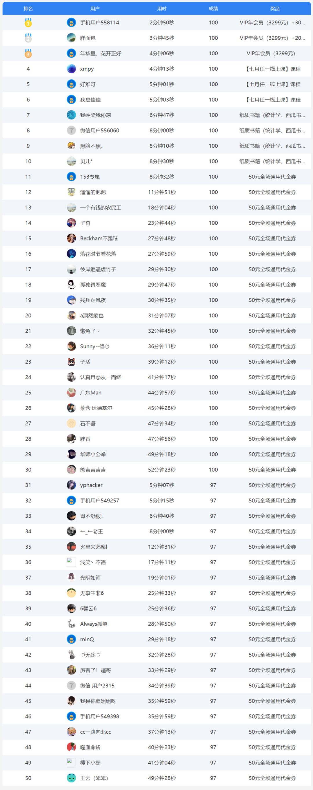 前三名将获得售价3299元的VIP年会员