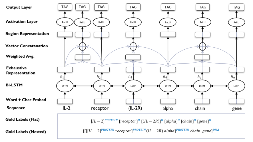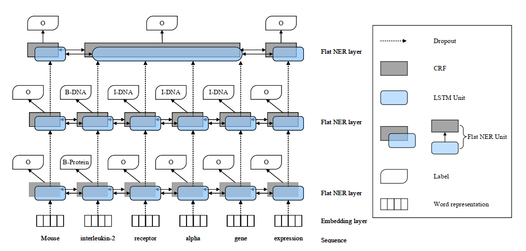 [1] Ju M, Miwa M, Ananiadou S. A neural layered model for nested named entity recognition[C]//Proceedings of the 2018 Conference of the North American Chapter of the Association for Computational Linguistics: Human Language Technologies, Volume 1 (Long Papers). 2018: 1446-1459.