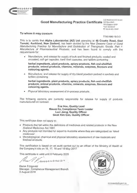 注:GMP认证,新西兰药物与医疗器械安全局认证;