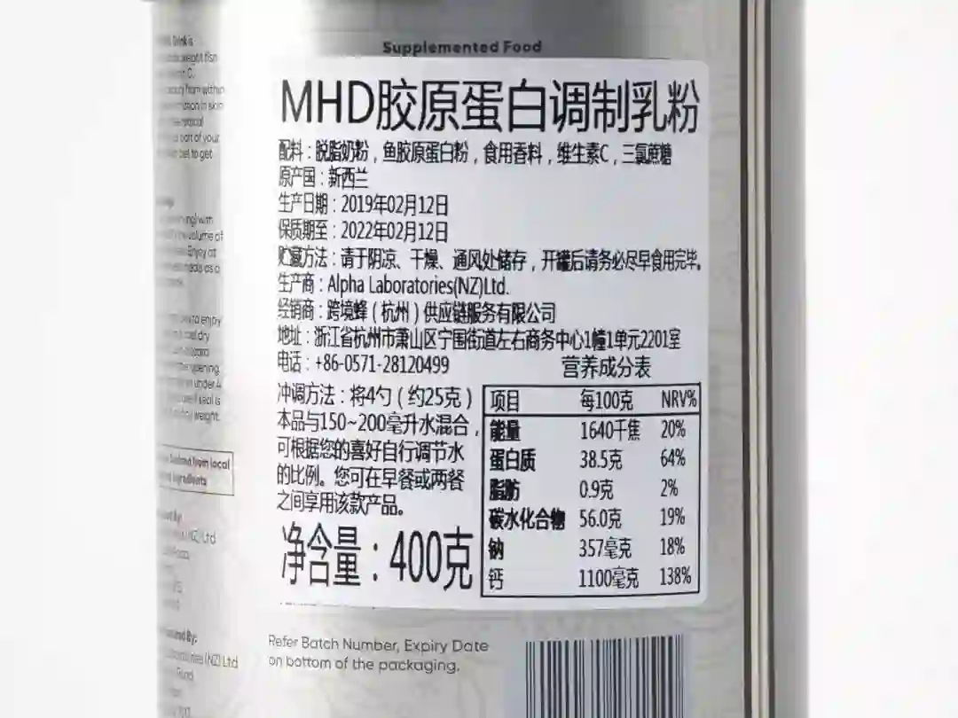 就是这罐胶原蛋白调制奶粉,来自新西兰品牌“MHD”。