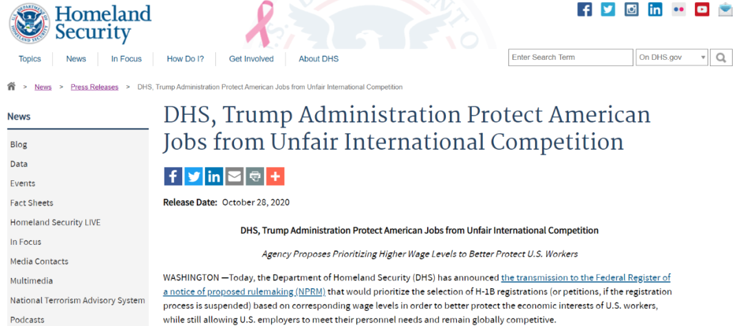 文件地址:https://www.dhs.gov/sites/default/files/publications/20_1028_uscis_h-1b-registration-selection-by-wage-levels-nprm-508.pdf