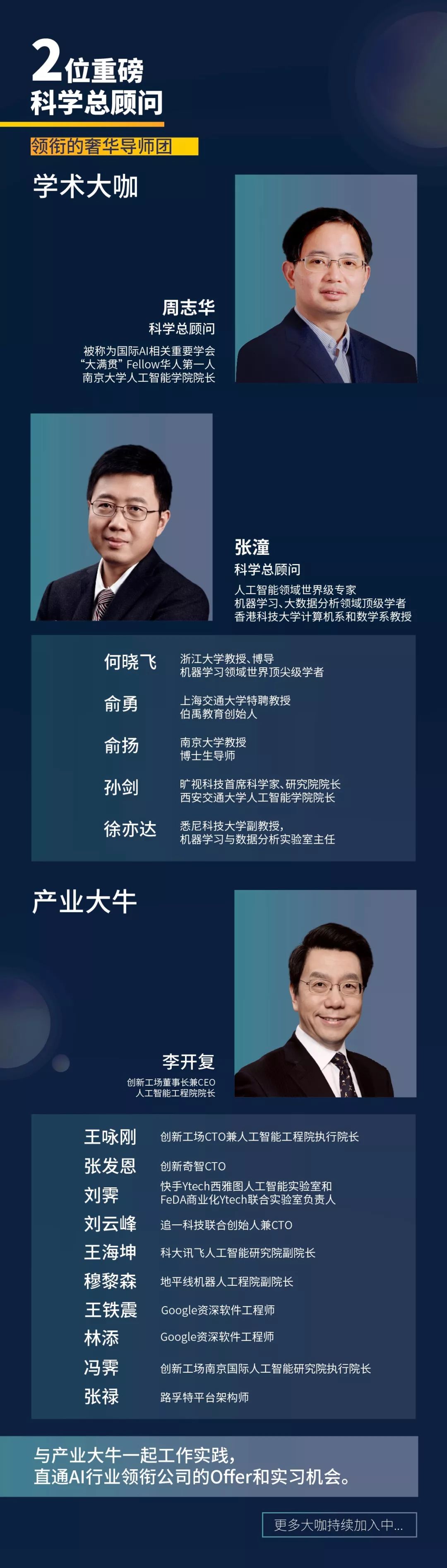 李开复、周志华、张潼、何晓飞、俞勇、俞扬、王咏刚、冯霁、刘霁、王海坤……这些学术大咖和产业大牛相信你一定不陌生!