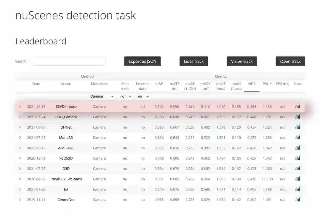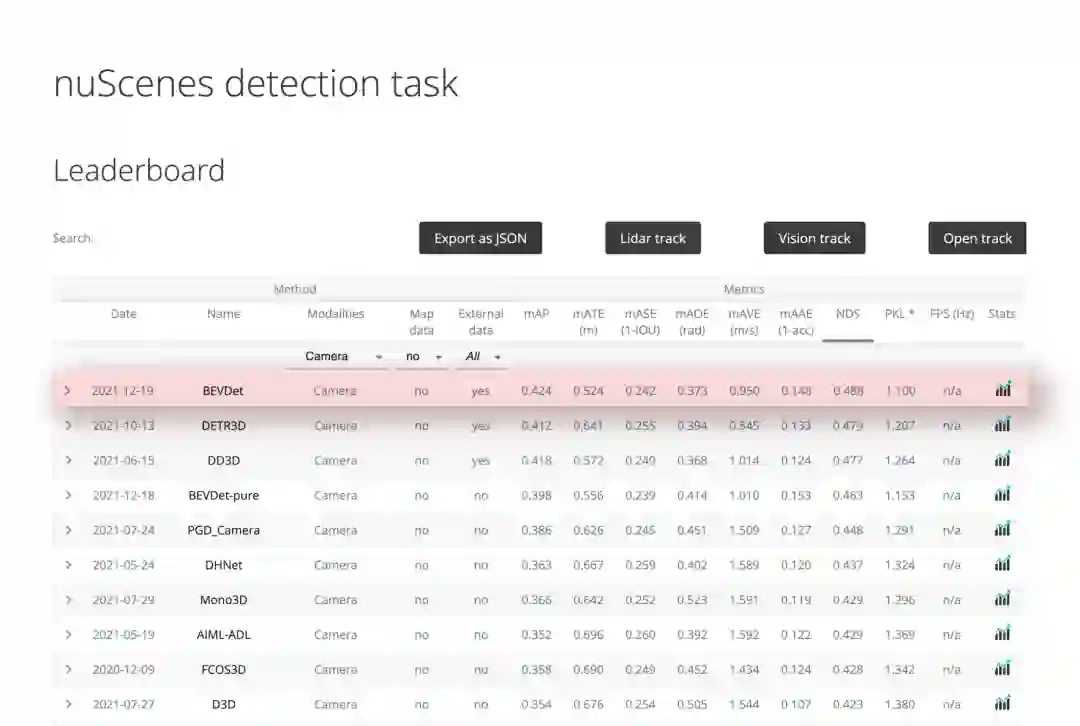 日前,在自动驾驶权威评测集 nuScenes 上,鉴智机器人凭借提出的纯视觉自动驾驶 3D 感知新范式 BEVDet,以绝对优势获得纯视觉 3D 目标检测世界第一的成绩。BEVDet 是首个公开的同时兼具高性能、扩展性和实用性的 BEV 空间 3D 感知范式,以 BEVDet 为核心的系列技术将有希望解决视觉为主自动驾驶解决方案中视觉雷达、4D 感知、实时局部地图等关键问题,未来将应用于鉴智机器人以视觉雷达为核心的高级别自动驾驶等产品和解决方案中,为自动驾驶的大规模量产发挥关键的作用。