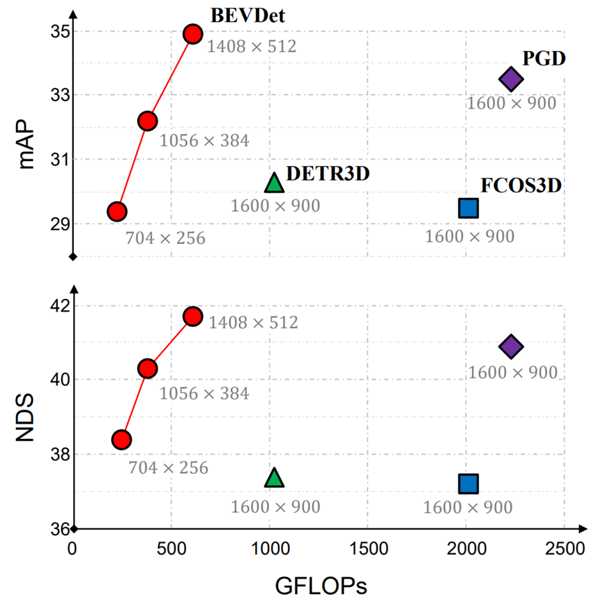 - BEVDet 利用更低的算力达到同样或者更好的算法效果,将有助于自动驾驶系统的算力利用效率的提升。