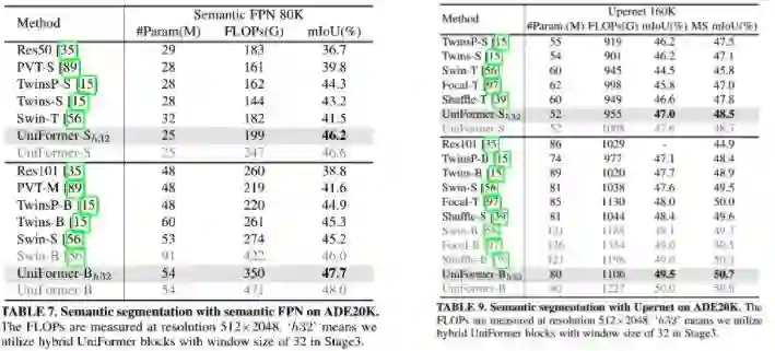 上表给出了ADE20K数据集上的性能对比,可以看到: