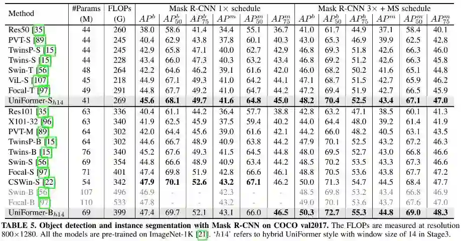 上表给出了COCO检测与分割任务上的性能对比,基础框架为Mask R-CNN,可以看到: