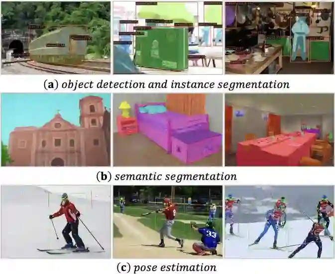 稠密预测任务有助于验证所提识别骨干架构的泛化性。因此,我们将UniFormer骨干使用多个主流稠密任务,包含目标检测、实例分割、语义分割以及人体姿态估计。