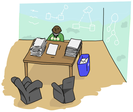 这句话明显触动了软件架构师。“我猜我可能漏了点东西,”他终于承认了。“问题在于,虽然你要求他们实现一个想法,但并没有好的办法去测试或验证这个想法……”他沉思着,低下了头。“有时候,似乎软件架构师的工作既不是软件,也不是架构。”