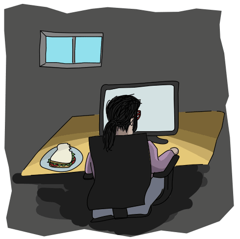 午饭时间,小printf打断了一个人,他一直盯着屏幕,似乎忘记了吃午饭,旁边的三明治早就凉了。