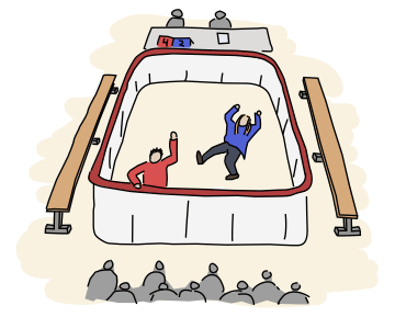 当然,魁北克的即兴剧院略有不同,附近有一个溜冰场,人人都喜欢打冰球。