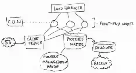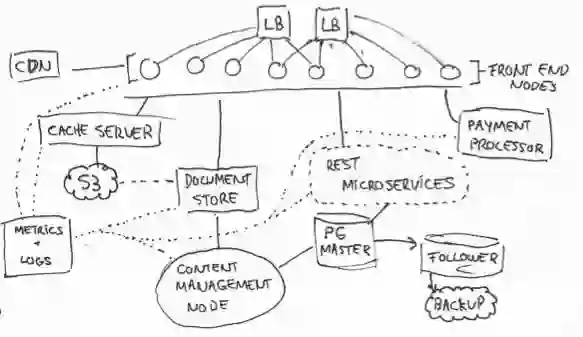 我感到有点不快,我的这个系统设计考虑到了冗余、监控、备份、缓存以及其他减少负载的机制,还有法律保护的外部支付处理器、故障转移、易于部署等等。我本来可以收取相当可观的咨询费!我没有耐心了,于是就画了一个这个: