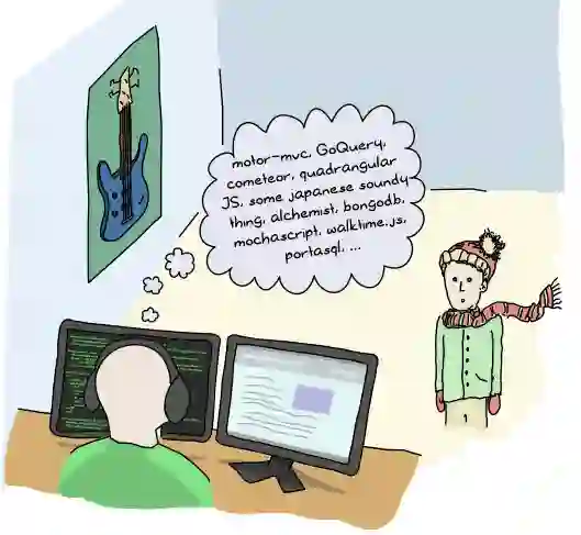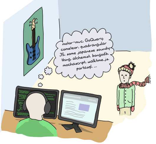 “哦,我正在尝试新的框架、工具、数据库和语言。”