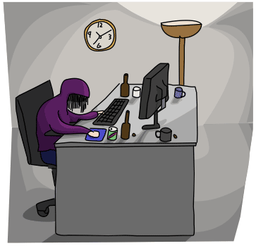 小printf的下一站遇到了一个疲惫的员工,她正在愤怒地敲键盘,面前有几十个东倒西歪的空咖啡杯。