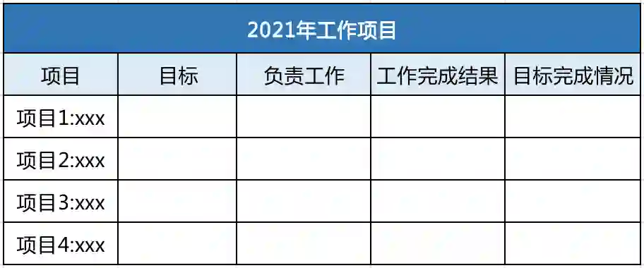 可以将列举出的工作填入下表,来更直观地对比目标和结果。
