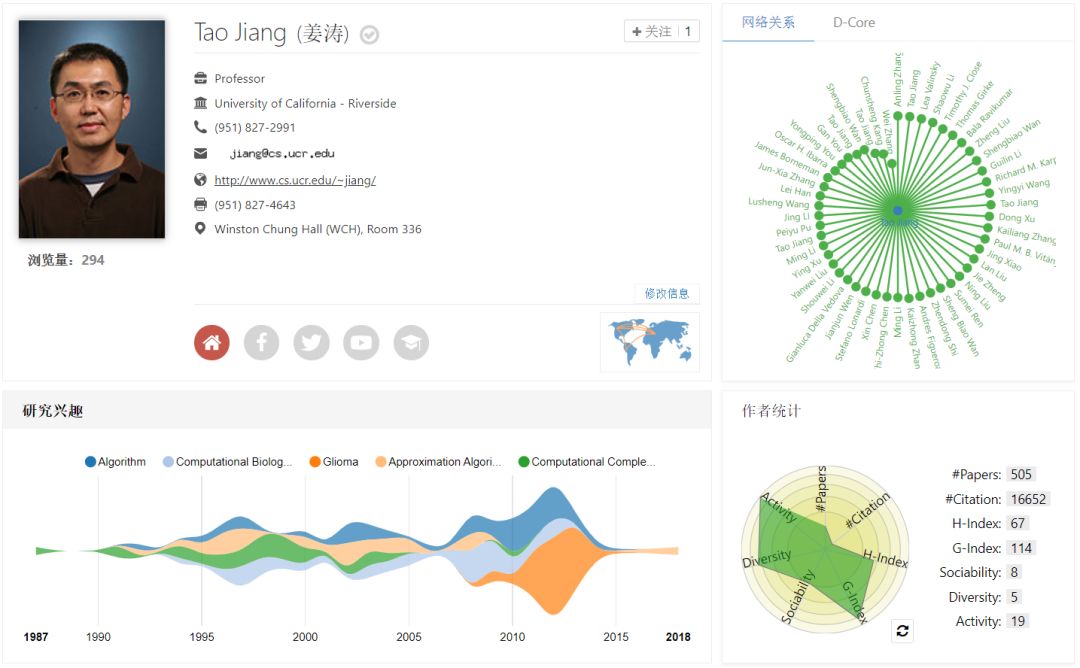 先来看看这位大牛。姜涛是加州大学河滨分校的教授。早在2007 年,他就已入选ACM Fellow。