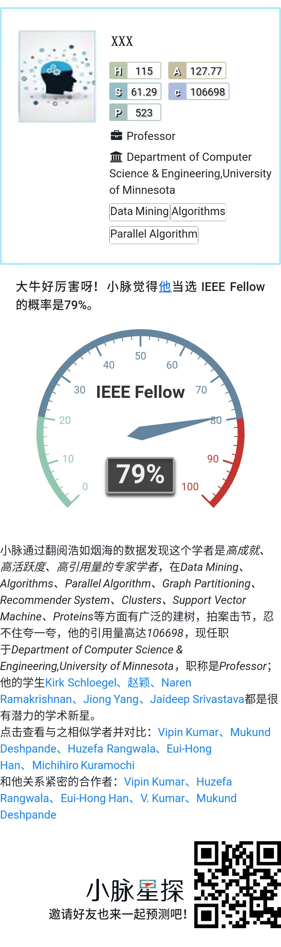 以下学者是小脉测算出具有较高概率获得IEEE Fellow的学者名单: