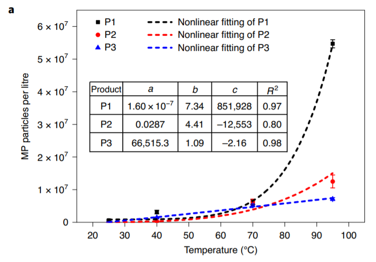 该研究还发现,奶瓶中的温度与微塑料的释放量之间紧密相关。奶瓶中装好配制好的奶粉或灭菌的热水,在温度升高时,奶瓶释放出的微塑料颗粒会大大增加。