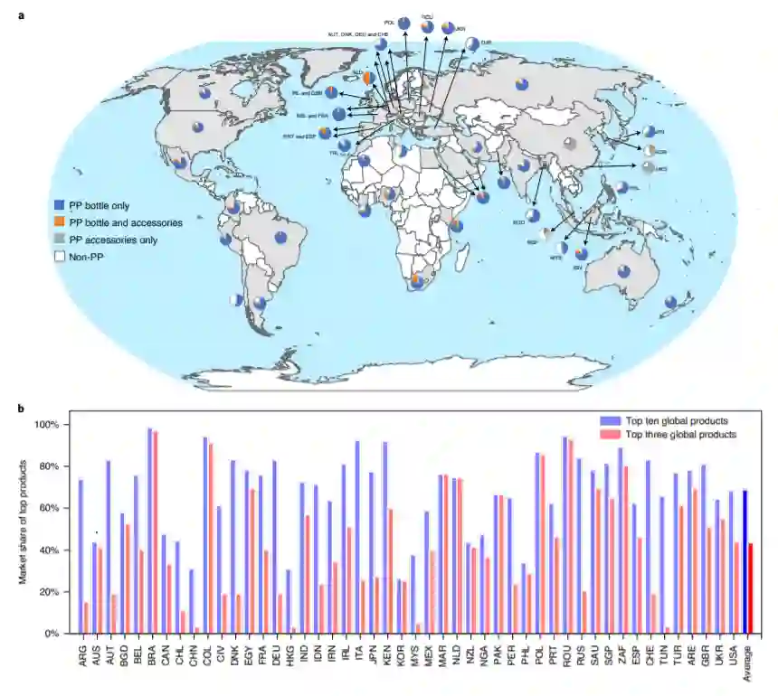 研究人员综合利用聚乙烯婴儿奶瓶的微塑料颗粒释放率、每种聚乙烯婴儿奶瓶的市场份额、婴儿每天的吸奶量和母乳喂养率,估算了 48 个国家和地区的 12 个月大婴儿接触微塑料的情况。