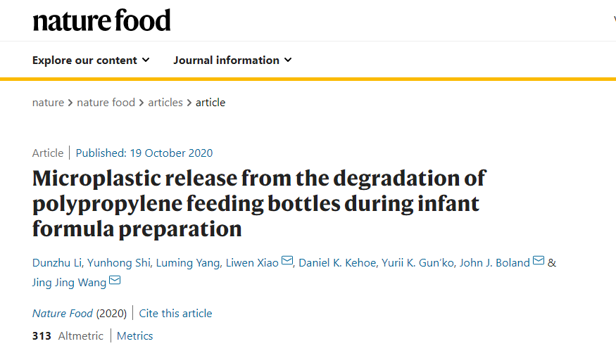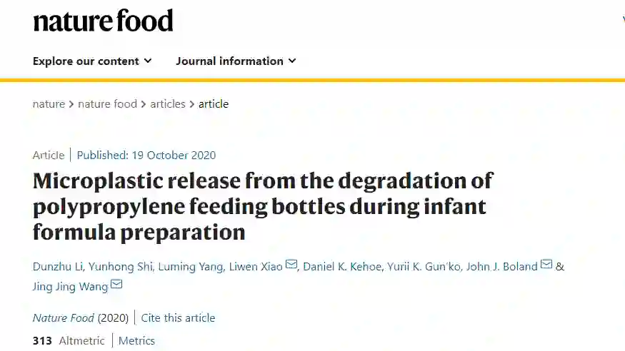 《自然-食品》:你以为十分安全的塑料奶瓶,也会在沏奶时释放数百万微塑料颗粒