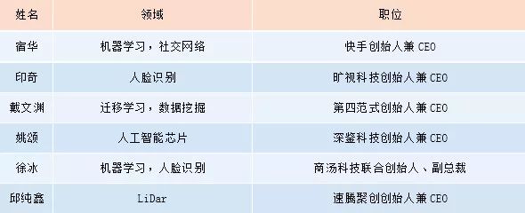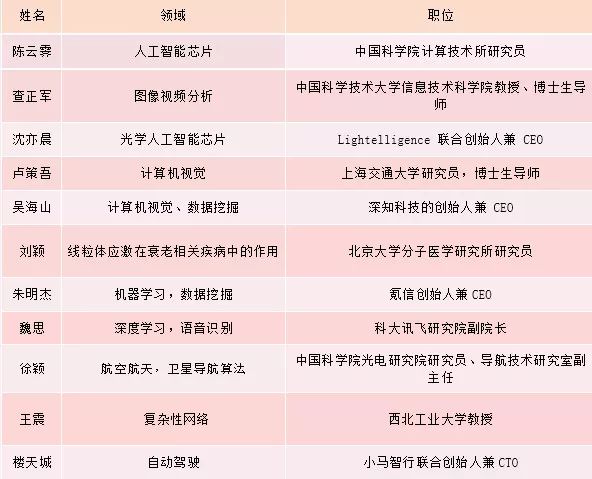 除了以上提及的学界人工智能领域研究人员,业界也有诸多人工智能界领军人物入选,名单如下: